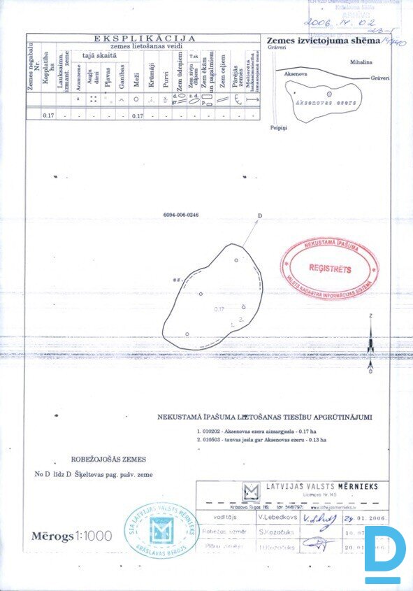 | Piedāvājam iegādāties salu 1700 m² platībā, Aksenovas ezerā, ezers atrodas Krāslavas novadā, Šķeltovas pagasta administratīvajā teritorijā. Vidējais dziļums ir 3.5 metri, bet maksimālais dziļums - 9.4 metri. Ezeram ir vairākas (7 gab.) salas. Ezerā sastopamās zivis: vēdzele, asaris, līdaka, plaudis, rauda. Īpašums bez apgrūtinājumiem un nodokļu parādiem, zemesgrāmata. | |